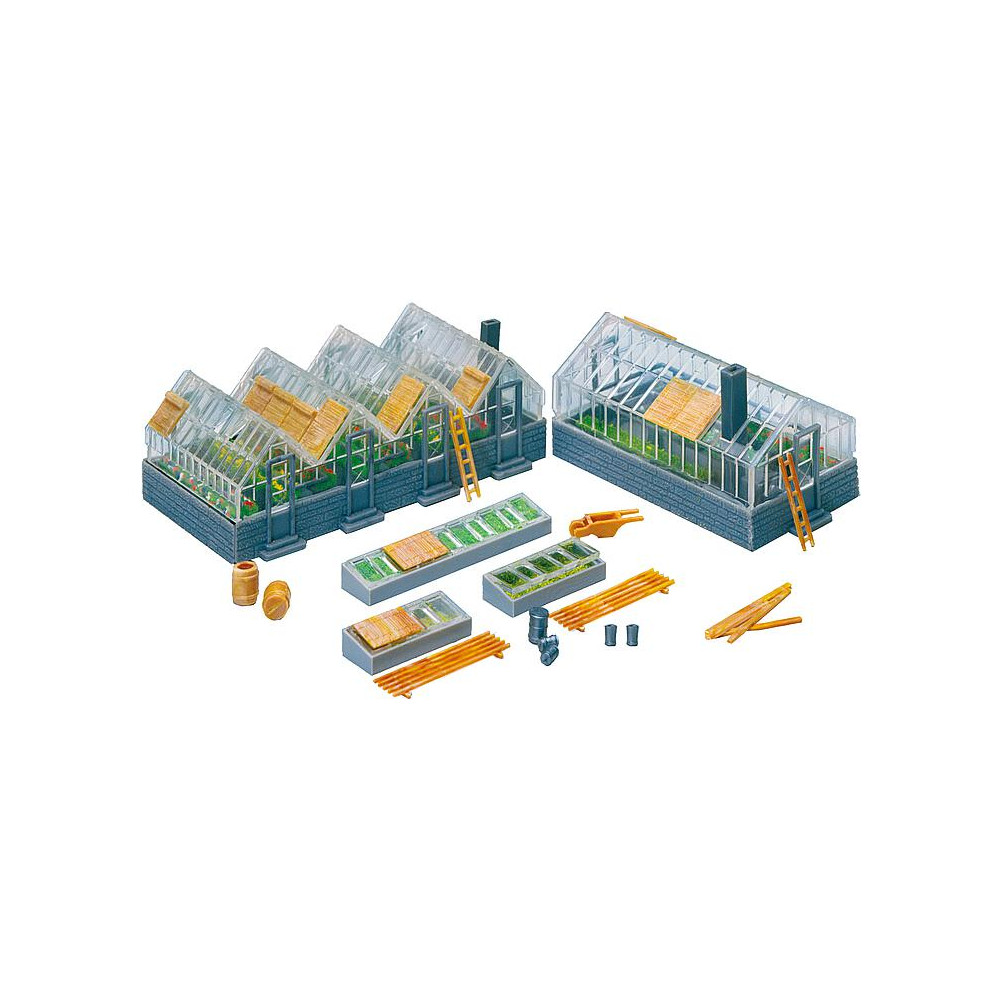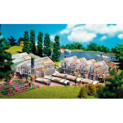 Faller Kleine tuinderij. Begin met het kweken van u miniatuur groente in de kleine tuinderij. Kwekerij met 2 kassen, 3 koude kassen en toebehoren.