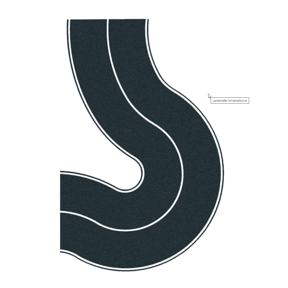 Asfaltweg donkergrijs bocht 2 stuks, 66 mm breed
