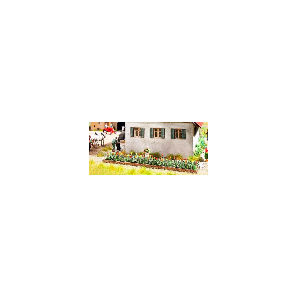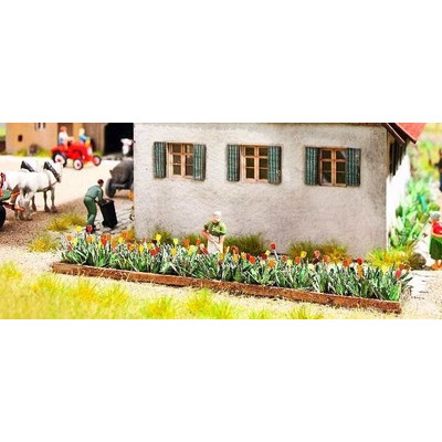 H0 Laser-Cut mini's tulpen. Elke afzonderlijke plant wordt met een lasersnijder uit realistisch bedrukt, veelkleurig karton gesneden. Het gebruik is heel eenvoudig: U brengt de Laser-Cut mini's met de hand in vorm en met een druppel lijm zet u ze in uw modelbaanlandschap vast.