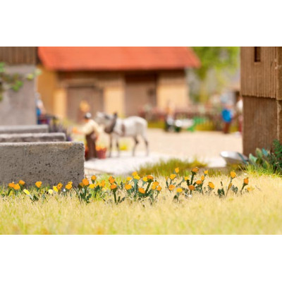 H0 Laser-Cut mini's paardenbloemen. Elke afzonderlijke plant wordt met een lasersnijder uit realistisch bedrukt, veelkleurig karton gesneden. Het gebruik is heel eenvoudig: U brengt de Laser-Cut mini's met de hand in vorm en met een druppel lijm zet u ze in uw modelbaanlandschap vast.