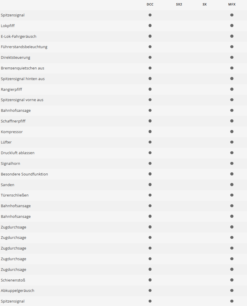 Behuizing en frame van gegoten zink. Ingebouwde digitale decoder en geluidsgenerator voor gebruik met mfx en DCC. Motor met vliegwiel, 4 assen aangedreven, tractiebanden. Frontsein en sluitseinen met de rijrichting wisselend, warmwitte LED's, cabineverlichting digitaal schakelbaar. Kinematica voor kortkoppeling. Frontsein wisselt analoog met de rijrichting. Aangebouwde handgrepen. Lengte over buffers 104 mm.