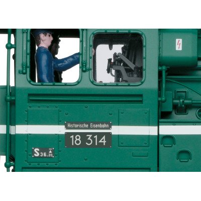 Compleet nieuwe constructie, vervaardigd van metaal. Onderstel, locomotiefopbouw met ketel en cabine van persgietzink. Overige gemonteerde delen grotendeels van metaal (MS). Hoogwaardig model met veel gemonteerde elementen en uiterst gedetailleerde machinistencabine. Rookkastdeur die open kan. Beweegbare machinistencabinedeuren en nog veel meer. Met digitale mfx-decoder met 32 functies, geregelde hoogvermogenaandrijving en geluidsgenerator met wielsynchroon rijgeluid en uitgebreide geluidsfuncties. Gebruik naar keuze met wisselstroom, gelijkstroom, Märklin Digital en DCC mogelijk. Ingebouwde buffercondensator. Alle aandrijfassen aangedreven. Ingebouwde rookgenerator met wielsynchrone stoomuitstoot, variabele cilinderstoom en stoomfluit. Verlichting van de aandrijving, driepuntsfrontlicht met bij het tijdperk passende lichtkleuren, met de rijrichting wisselend. Frontverlichting in conventioneel bedrijf, digitaal schakelbaar. Verlichting met onderhoudsvrije warmwitte ledlampjes.