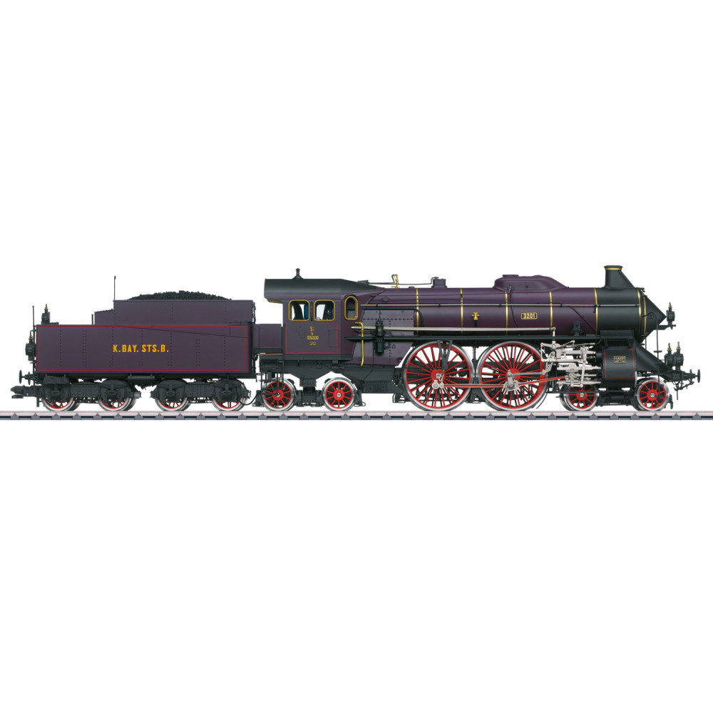 Sneltrein-stoomlocomotief uit Beierse serie S 2/6 in bruinpaarse basiskleurstelling met goudkleurige ketelringen van de Königlich Bayerische Staatsbahn (K.Bay.Sts.B.), ingezet in het netwerk ten westen van de Rijn (Pfalz). Zoals in gebruik van 1910 tot 1912. Locnummer 3201