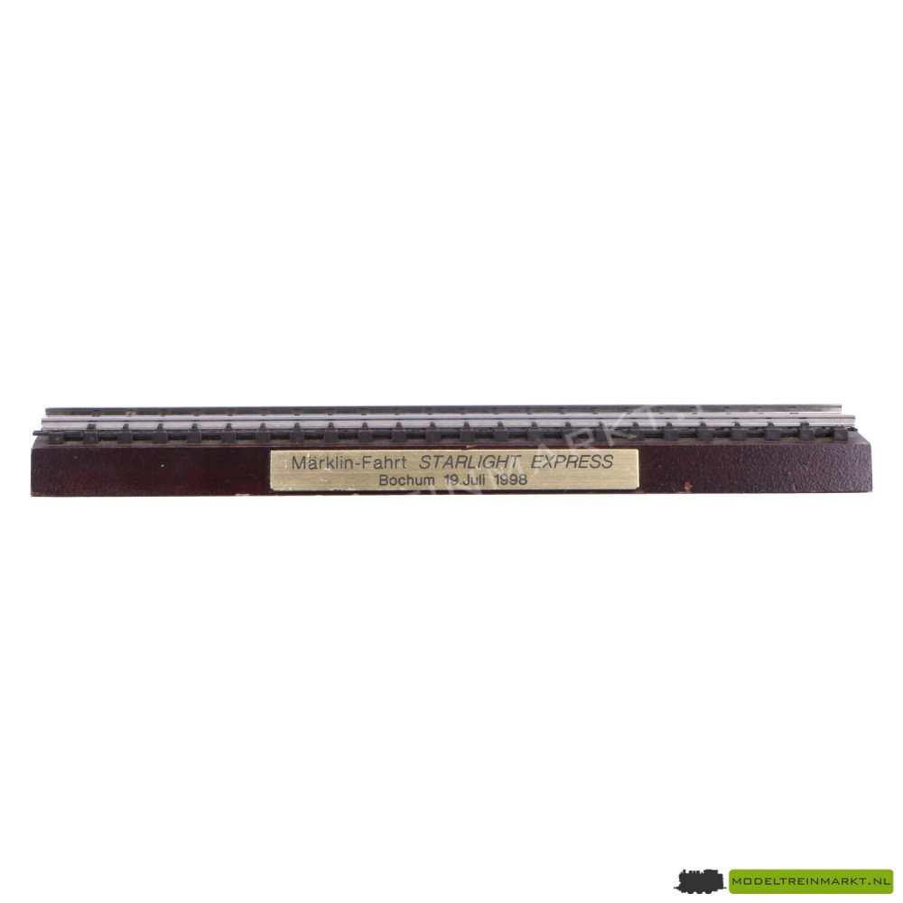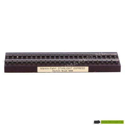 Presentatiesokkel voor Märklin 37373/34373. Met het opschrift: "Märklin-Fahrt STARLIGHT EXPRESS Bochum 19.Juli 1998".