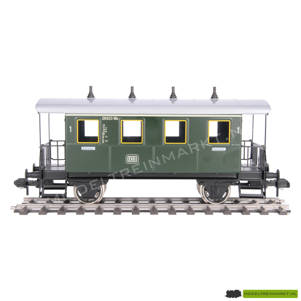 Tweeassig reizigersrijtuig, 1ste klasse, van de Deutsche Bundesbahn (DB). Deuren in de fronten kunnen geopend worden. Dak afneembaar. Voorzien van 2 rijen zitbanken. Wielstellen met spaken.
