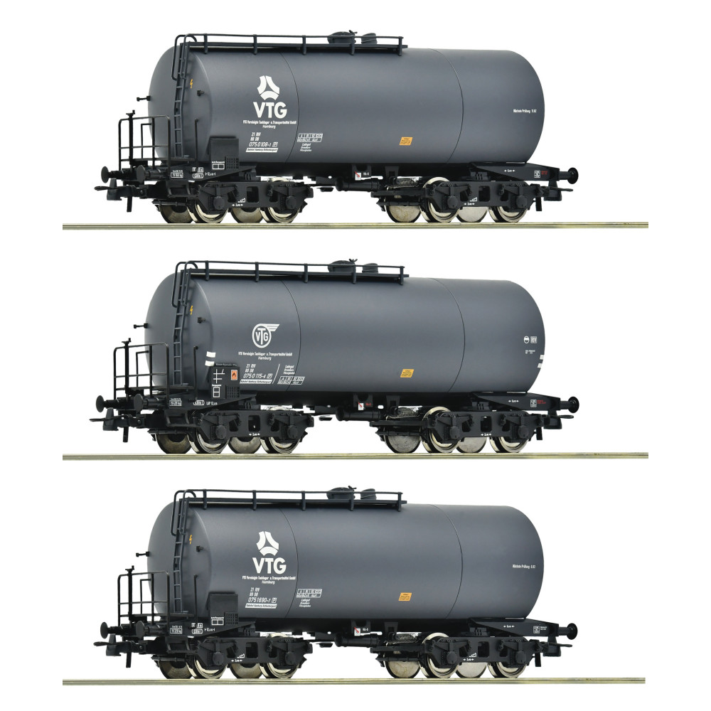 Set van drie 4-assige ketelwagens VTG. Alle wagens met verschillende opdrukken.