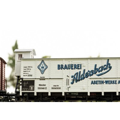 Set van 7 goederenwagens van verschillende typen van de Deutsche Reichsbahn (DRB), tijdperk II. 1 open goederenwagen Om Königsberg met remhokje en beladen met kolen. Een paar draaischamelwagens H Regensburg met boomstammen. 1 open goederenwagen O Neurenberg beladen met kolen. 1 koelwagen voor bier van brouwerij Aldersbach met hoog geplaatst remhokje. 1 gesloten goederenwagen G Kassel en 1 gesloten goederenwagen Ghs Oppeln met remplatform en remhokje. Alle wagens zoals in gebruik rond 1939.