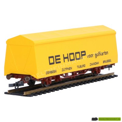 Omschrijving: Goederen wagon met "DE HOOP golfkarton" opdruk in de kleur geel.