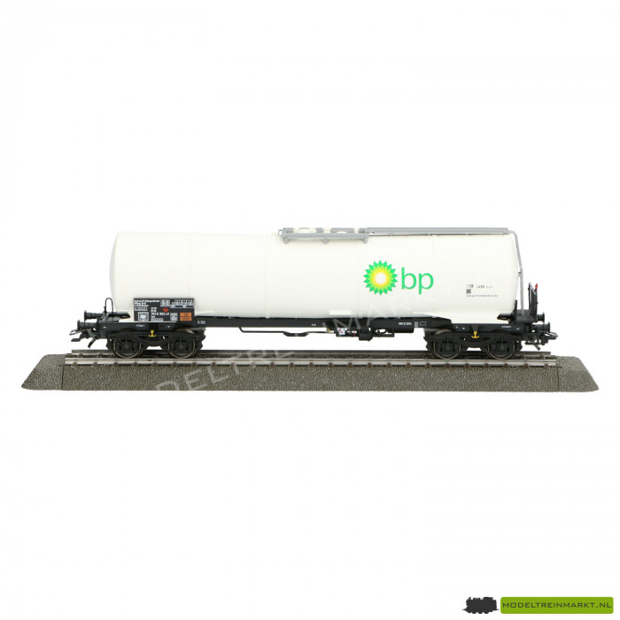 Particuliere wagen van de Deutsche BP Aktiengesellschaft, Bochum. Ketelwagen met knikketel en opstap op het front, ondergebracht bij de Deutsche Bahn AG (DB AG). Fijn gedetailleerd chassis met doorbroken frame. Bordes en loopplank afzonderlijk gemonteerd. Draaistellen type Y 25. Lengte over buffers 18 cm.